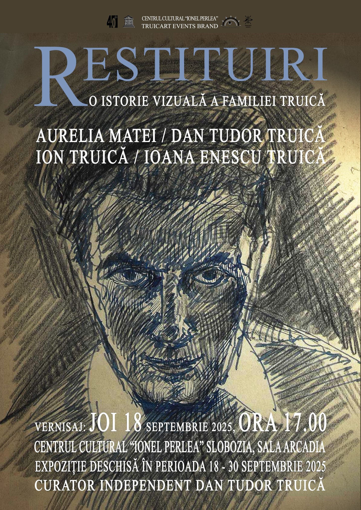 <RESTITUIRI – O istorie vizuală a familiei Truică>, joi 18 septembrie 2025, ora 17.00, la Centrul Cultural „Ionel Perlea”, Slobozia, sala Arcadia.