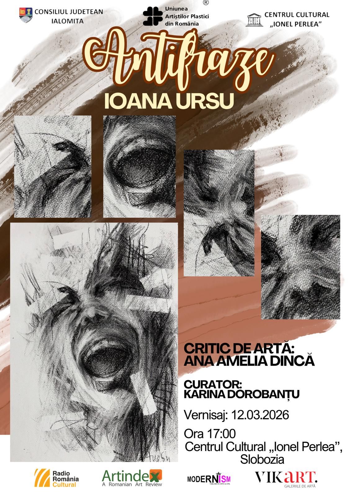 Centrul Cultural „Ionel Perlea” Ialomița vă invită la un eveniment artistic de excepție: vernisajul expoziției „Antifraze”, semnată de artista Ioana Ursu. Evenimentul va avea loc joi, 12 martie 2026, începând cu ora 17:00, în galeriile centrului nostru din Slobozia.